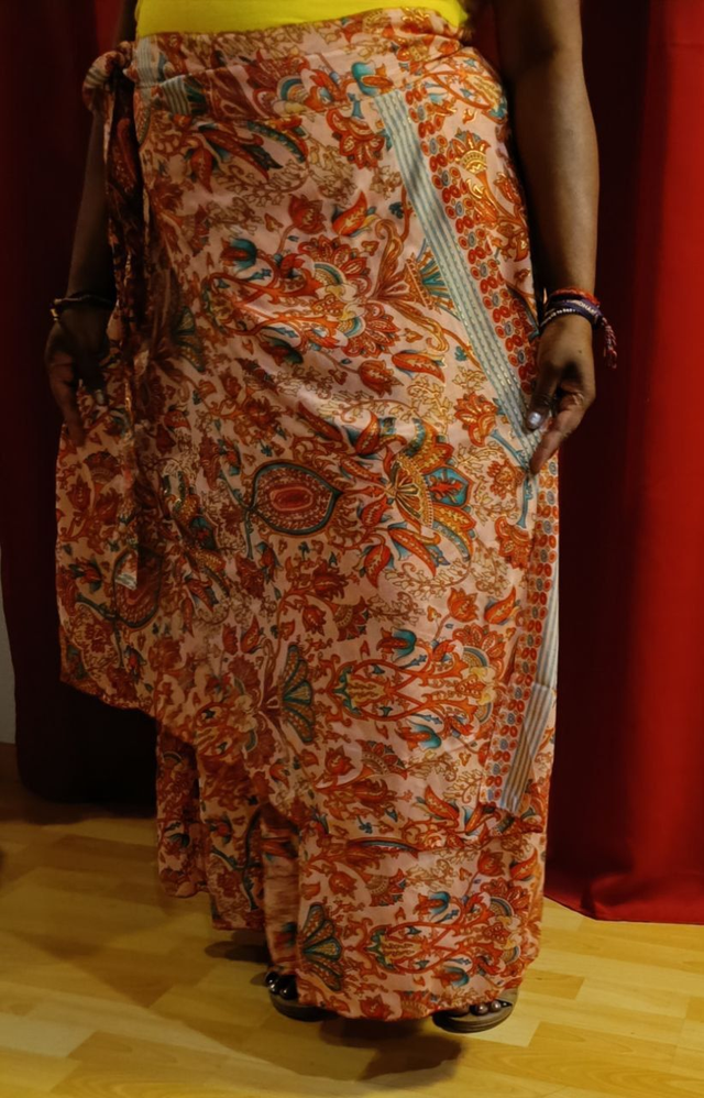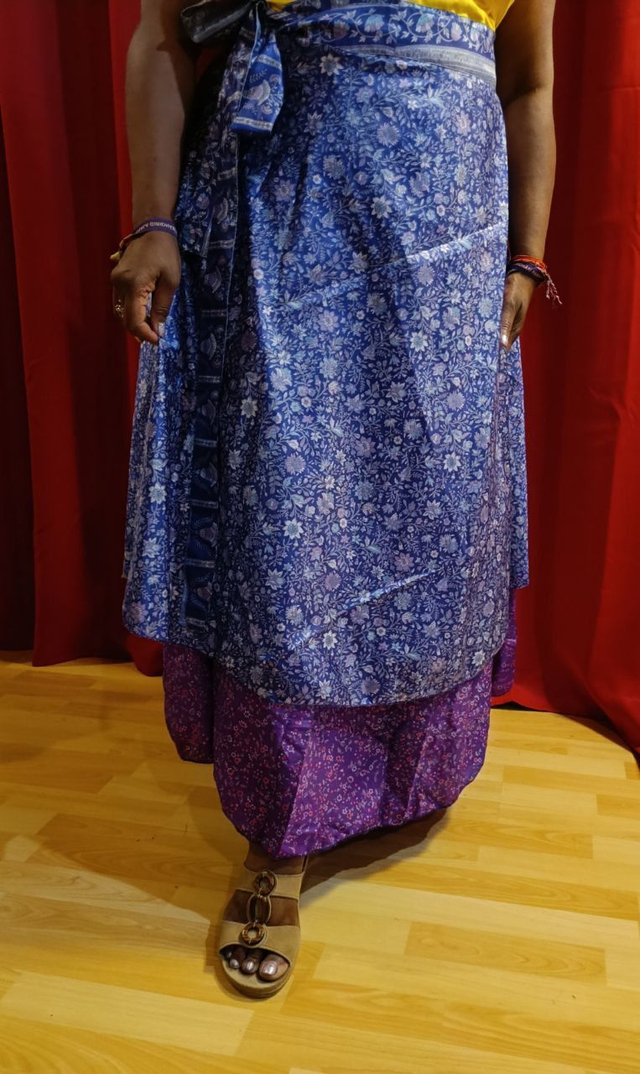 Jupe indienne Portefeuille, en SOIE et polyester, Réversible, longue 1 m, 2 volants, taille unique