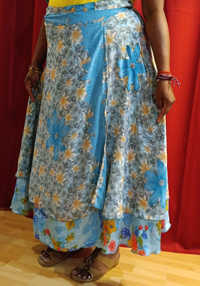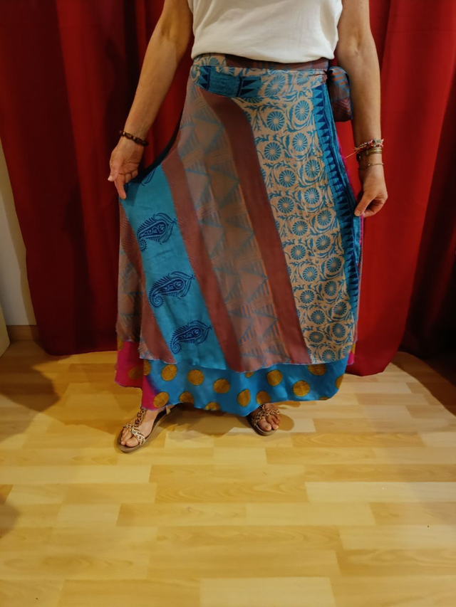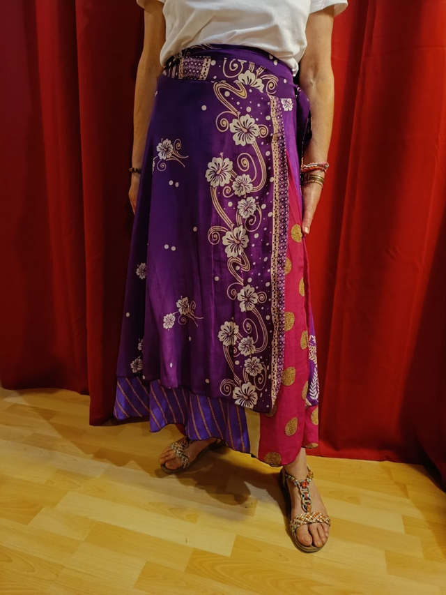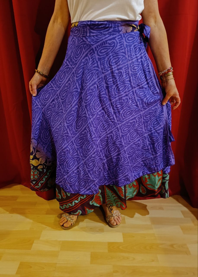 Jupe indienne Portefeuille, Réversible, longue (90cm) en Polyester, 2 volants, taille unique